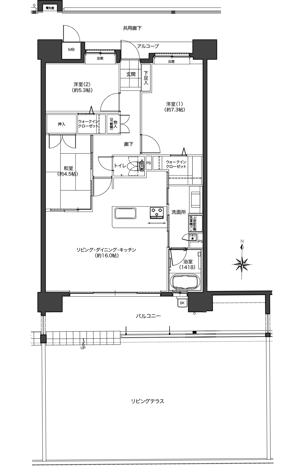 /2〜6階:3.57㎡(1.08坪)■リビングテラス面積/56.25㎡(17.02坪)
